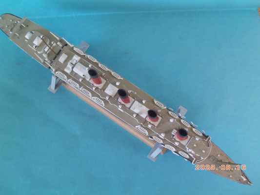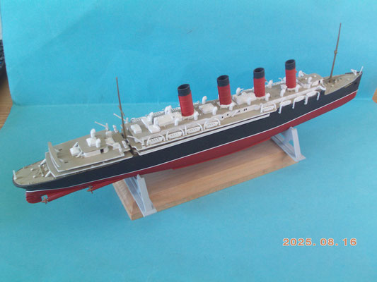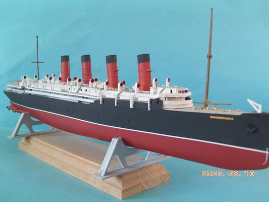 Nun mal ein Schiff im Maßstab 1:600 von Michael S.. Es ist das Modell von Airfix, die Mauretania. Diese war ein Schwesterschiff der Lusitania und hat den ersten Weltkrieg überlebt. Gebaut mit Unterstützung der Admiralität mit der Bedingung als Hilfskreuzer einsetzbar. Besaß 22 Jahre das blaue Band für Schnelligkeit. Geschichte nachlesbar auf Wikipedia. Das Modell ist schlicht und einfach auf Grund des Alters des Bausatzes. Aber gut gemacht. Prima.