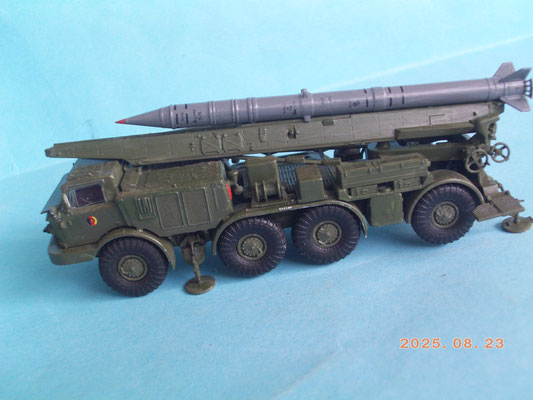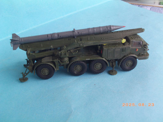 Das zweite Modell ist von Trumpeter. Ein taktisches Raketensystem 9K52 Luna-M oder FROG 7. Sehr schöner Bausatz mit Inneneinrichtung, mit Geschick zu montieren und Gummireifen, dargestellt in Startposition. Rakete aufrichtbar. Alles in mehreren Einsatzländern darstellbar. Decals sehr gut. Bausatz gut gespritzt. Wenig nacharbeiten erforderlich. Dargestellt eine Rampe der NVA. Im