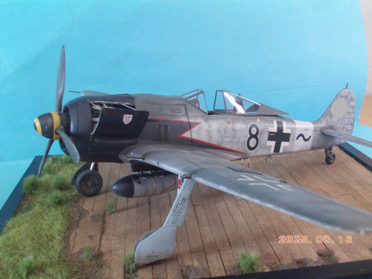 Ralf R. zeigte uns wieder ein großartiges Modell in 1 : 32 von Revell. Sein Bericht hier. Er zeigt uns eine FW 190 A8/R2. Das Original wurde von Willi Maximowitz bis April 45 geflogen. Bei seinem letzten Einsatz kehrte Er nicht zurück. Bis dahin hat er 27 Luftsiege erzielt davon 15 4. Mot. Bomber. Geschichte nachlesbar auf Wikipedia.